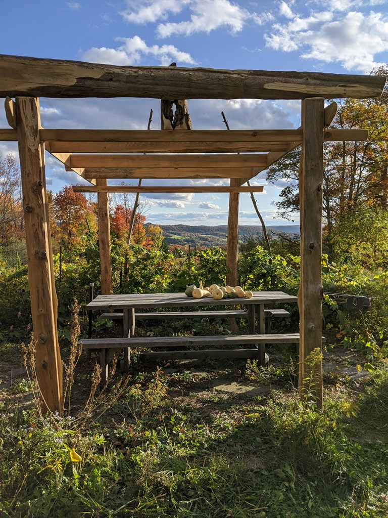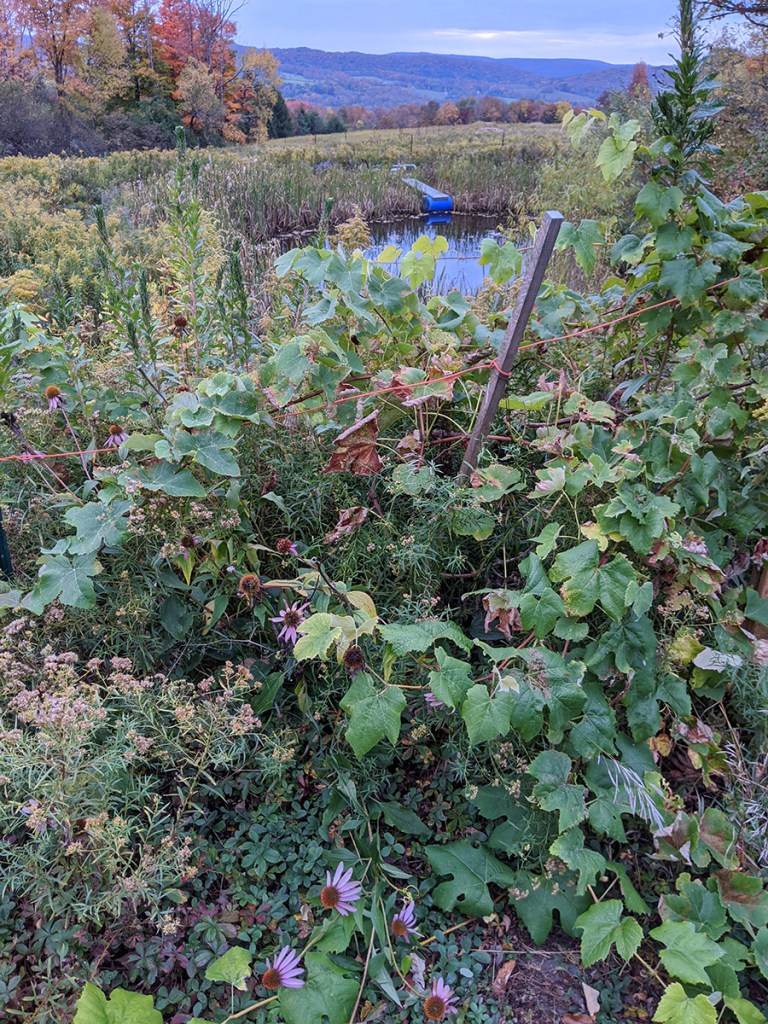 The seedless grapevines keep growing even after the frost.