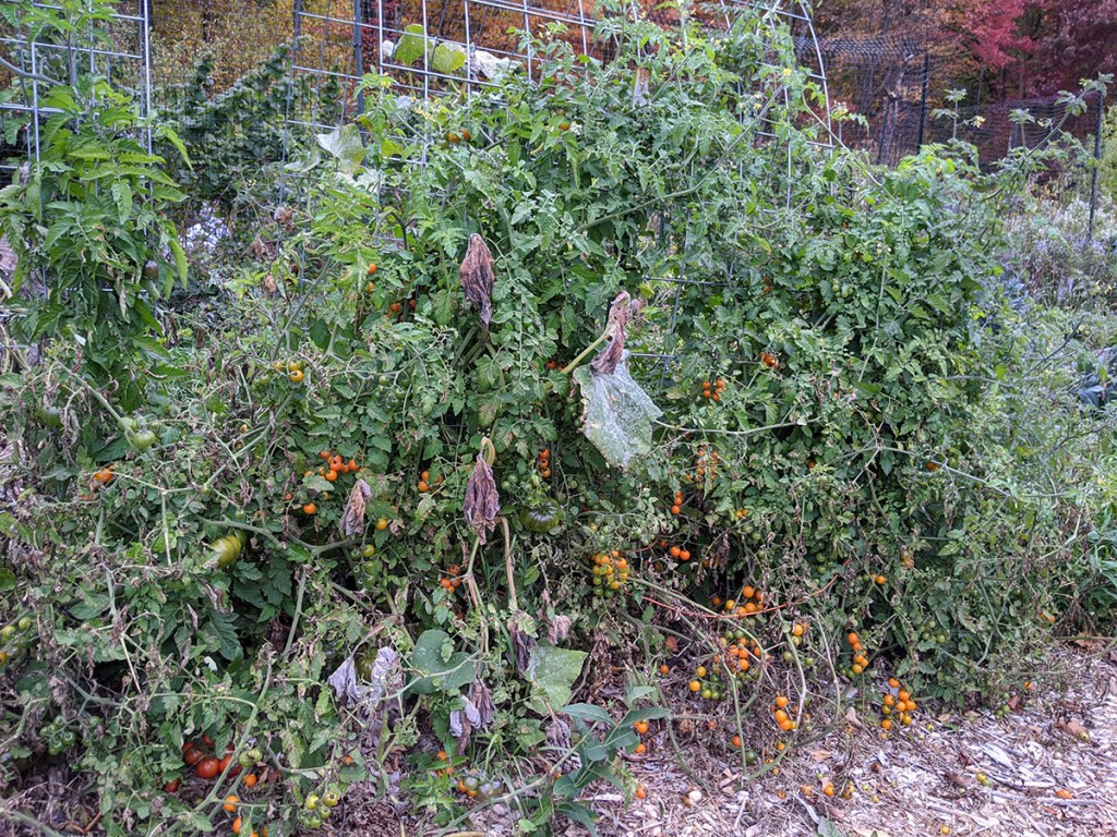 Dark Galaxy heirloom tomatoes partly survives first round of frost
