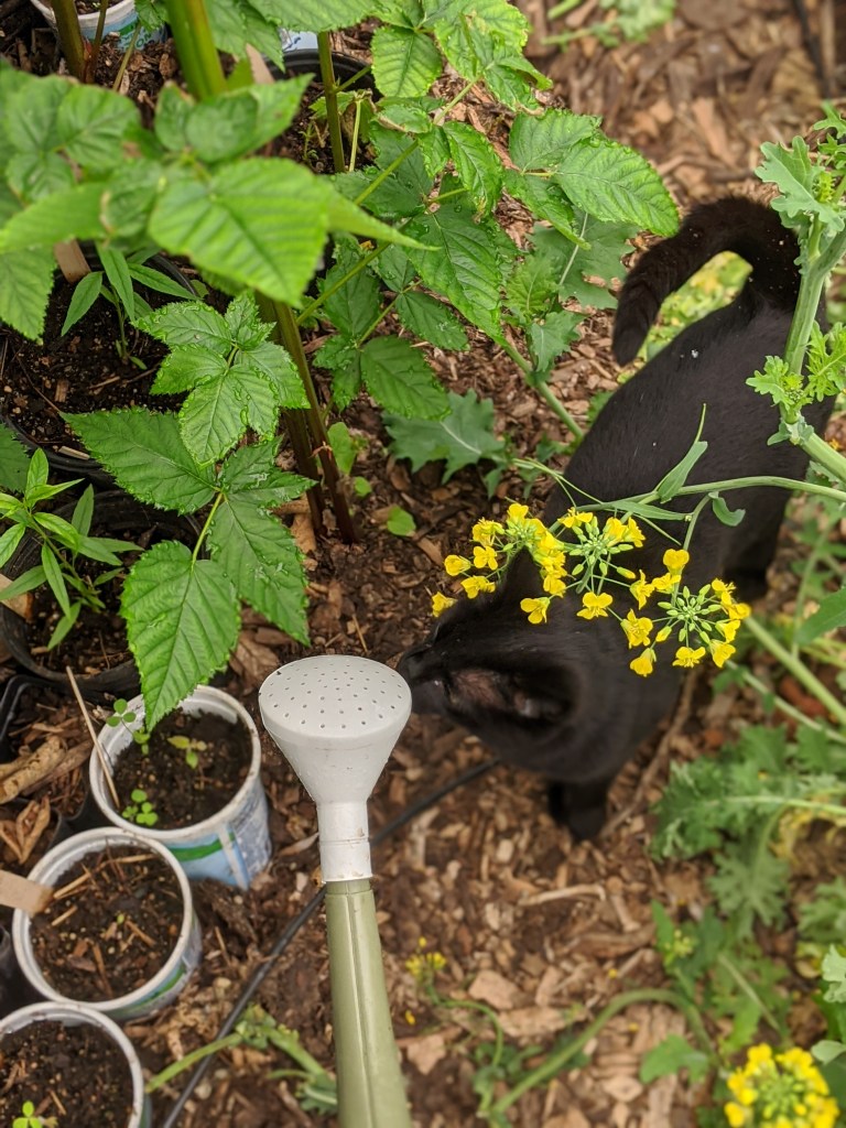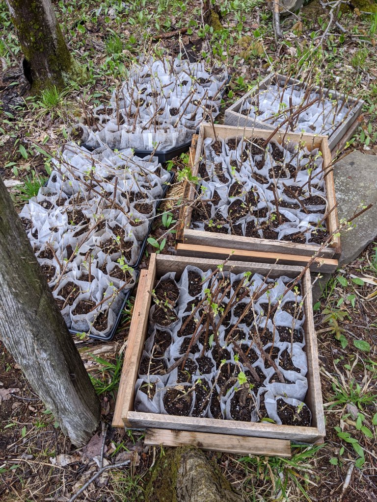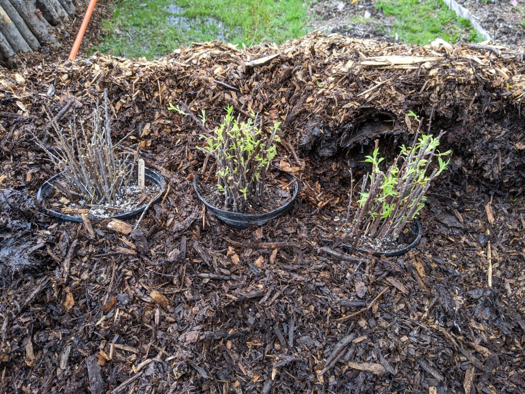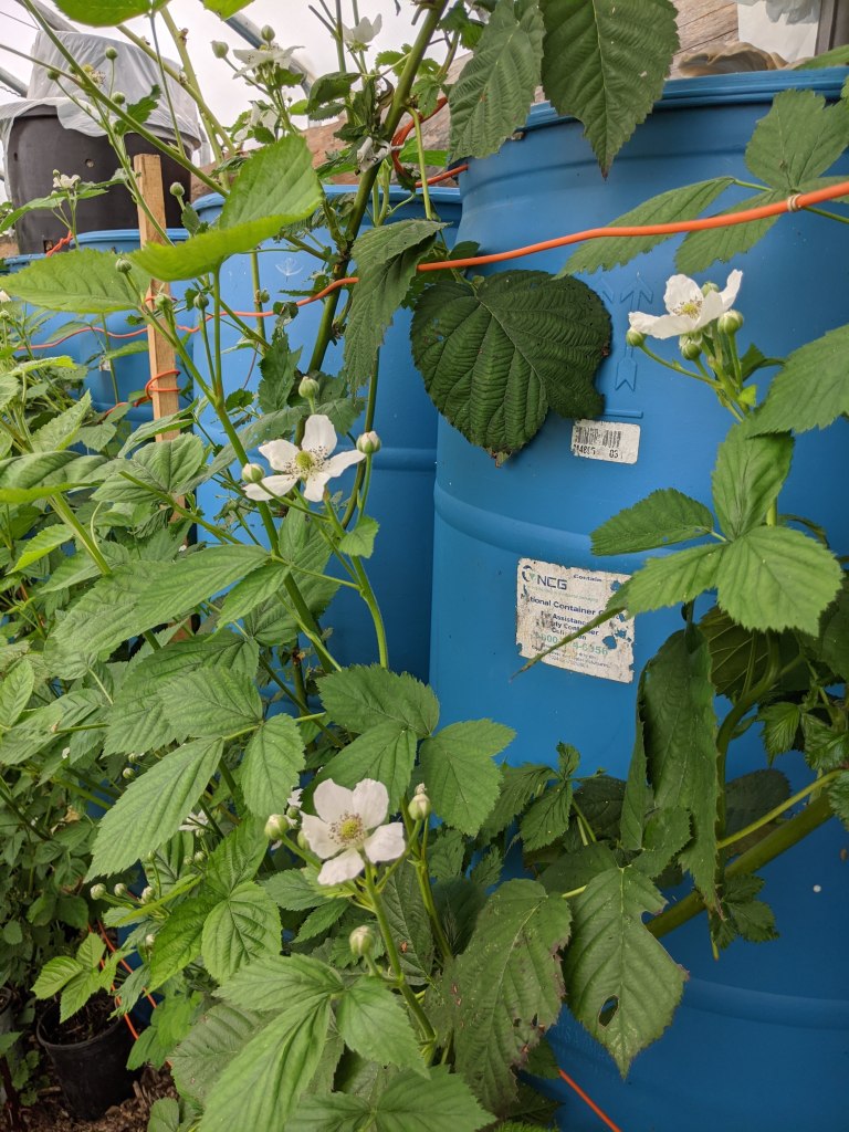 Making new black raspberry beds with cardboard, woodchip, a little of our good compost and of course the newly propagated black raspberry plants. We tip root black raspberries as soon as they are done fruiting into planting pots with a rock on top and about a month or two later it is all root ready to be cut and planted out. Both black and red raspberries have become our favorite berries, they are visually beautiful, produce loads of berries. In our experience they are easy too. Just give them some mulch and a little compost or aerated compost tea and they thrive even through droughts.