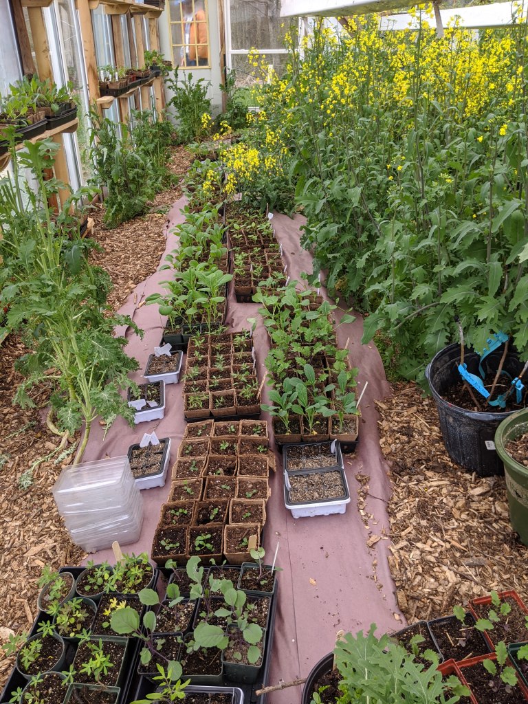 Kales in the winter garden. I like to let the annual garden stay in through the winter, knowing that some things will keep alive and the plant roots will feed the soil microbes through photosynthesis. It also allows the garden to be decorative over the winter and I get appreciate the displays of life, decay and regrowth. The kales left in the garden will produce early spring flowers for the pollinators and visual enjoyment to then be replaces with new plants.